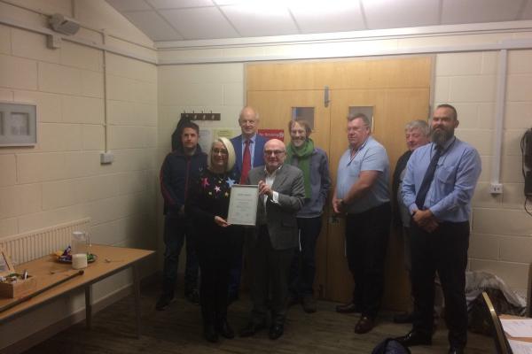 On Tuesday 21st November Vaughan had the honour and pleasure of attending Richard’s Branch, Cambridge Number 1, to present Richard’s wife Joy with the award on behalf of the Party.